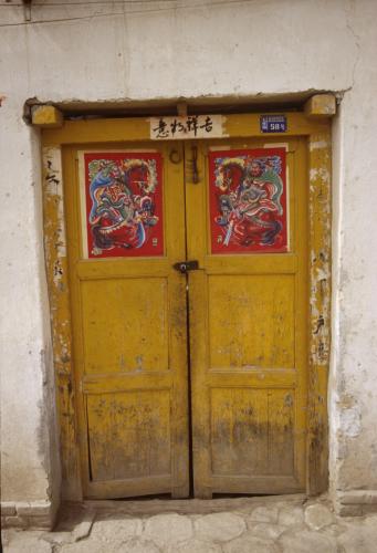途中にも生活が織り成されていることがわかる。郊外の家の玄関。