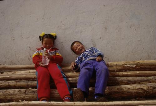 敦煌の郊外では、とりたてて遊び道具が無くても、子どもたちは仲良く遊んでいる。