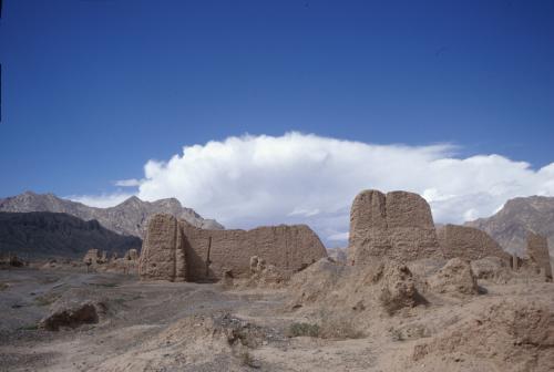 クチャ郊外にあるスバシ古城。玄奘三蔵の「大唐西域記」に記されているとおり、クチャ河の東西に 分かれている。出土品から漢の時代からの古城であるとされている。ササン朝ペルシャ(226年から 661年)時代の銀貨も出土しており、シルクロードの要衝として栄えたと考えられている。