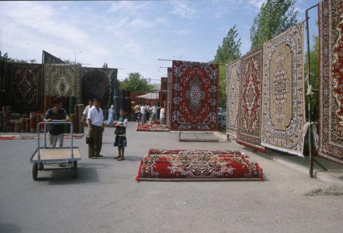 バザールには、大きなじゅうたんが並んでいる。伝統は、現代の生活の中にもに生きているようだ。