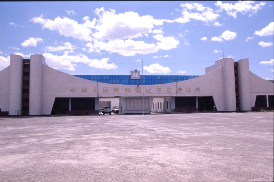 トパにある中国への出入国を管理する通関事務所。天山山脈ペダル越えの拠点となる宿舎は、100メートルほど離れたところにある。