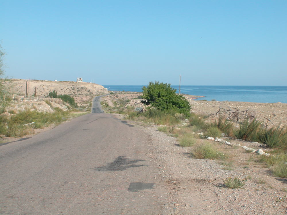 | 南岸。TamgaからTonに向かう道。左は雪の天山、右はIssyk-Kul。こんな贅沢があるだろうか。湖の色がきれいで素晴らしい走行でした。 |