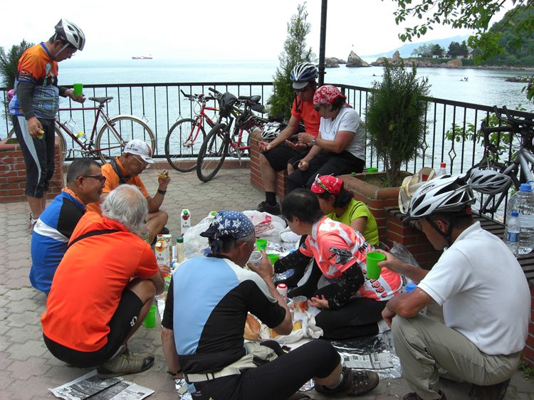 | その2 2009.5.19(水上) 5/17 アシカレ〜バイブルト 72Km 快晴 7:00 集合・出発 自転車をトラックに載せ昨日までの到達点アシカレまで移動する。 昨日はフラットな道をまわりのすばらしい山々をみながらゆっくりペースで走ったので、 疲れもなくバスにゆられてアシカレに到着。 7:50 バイブルクへ向けて出発 峠が待ち構えていることが分かっていたので皆緊張した様子であった。 段々進むにつれて登りのきつさが効いてきて最初のリタイヤはI崎でした。 標高差600mの峠を登り切るつもりが途中道が狭いので下りの車と交差するのが危険ということで、10:20にトラックに自転車を預けることになった。 峠で昼食となり買ってきたスイカを食べて、登りきった感じの開放感があった。 ところがこれからの下りからトラブルの連続となるのである。 10:50 最初のトラブル Y川さんのマウテンバイクの後輪がパンク。7分で修理完了。原因は車のバーストタイヤの残骸を踏んだためであった。 11:00 第2のトラブル T澤さんのマウンテンバイクの後輪の一部でサイド部分が膨らんでいた。 |