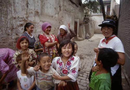 カシュガルの街は、迷路のような路地によって構成されている。土地の人でも迷うことがあるといわれるが、 通り抜けられる路地と行き止まりの路地は、通路に敷かれたレンガの形でわかるようになっている。路地を 入って地元の人たちのと交流は、シルクロード旅行の大きな楽しみだ。