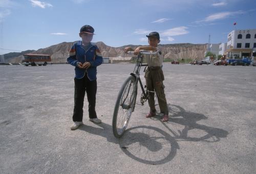 「ツール・ド・シルクロード20年計画」第7次遠征では、天山山脈ペダル越えを予定していた。国境の 町では、子どもたちが自転車でついてくる。だが、この年、洪水のために道路が決壊し、ペダルを 踏んで峠を越えることはできなかった。